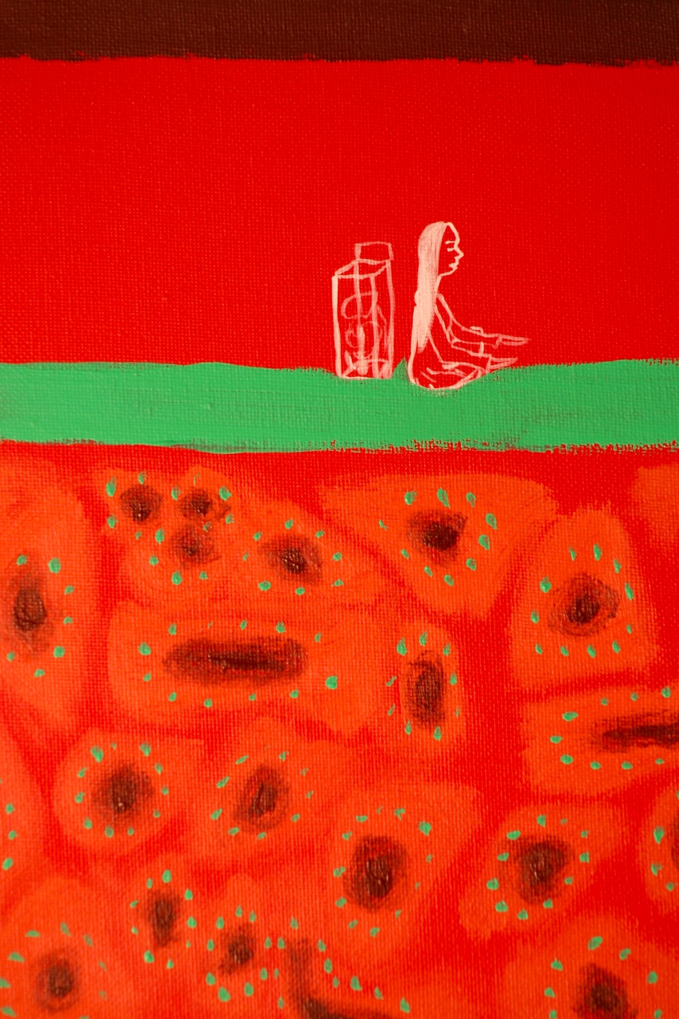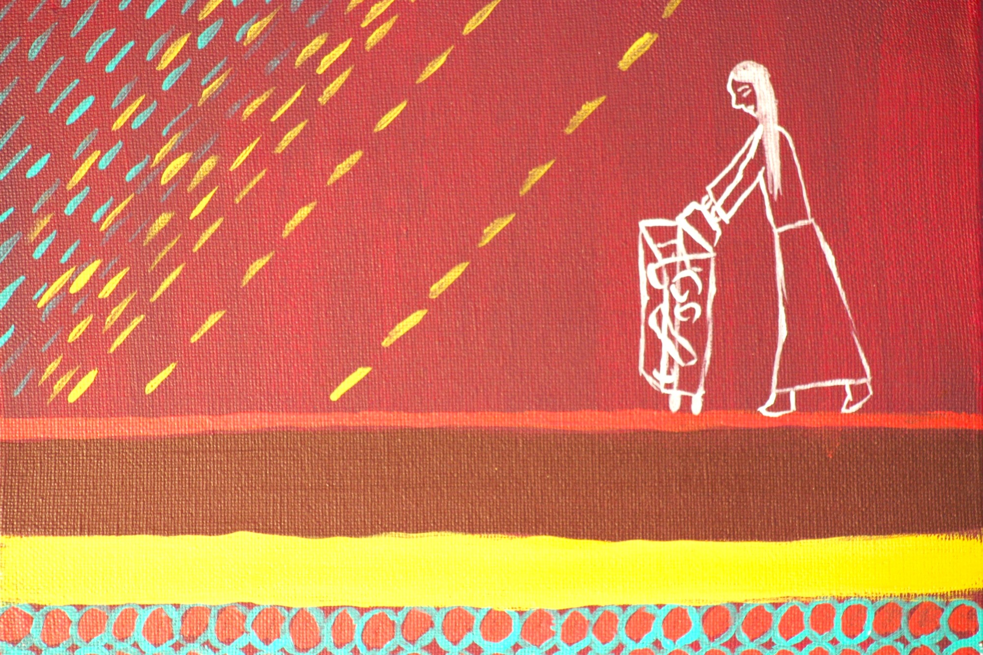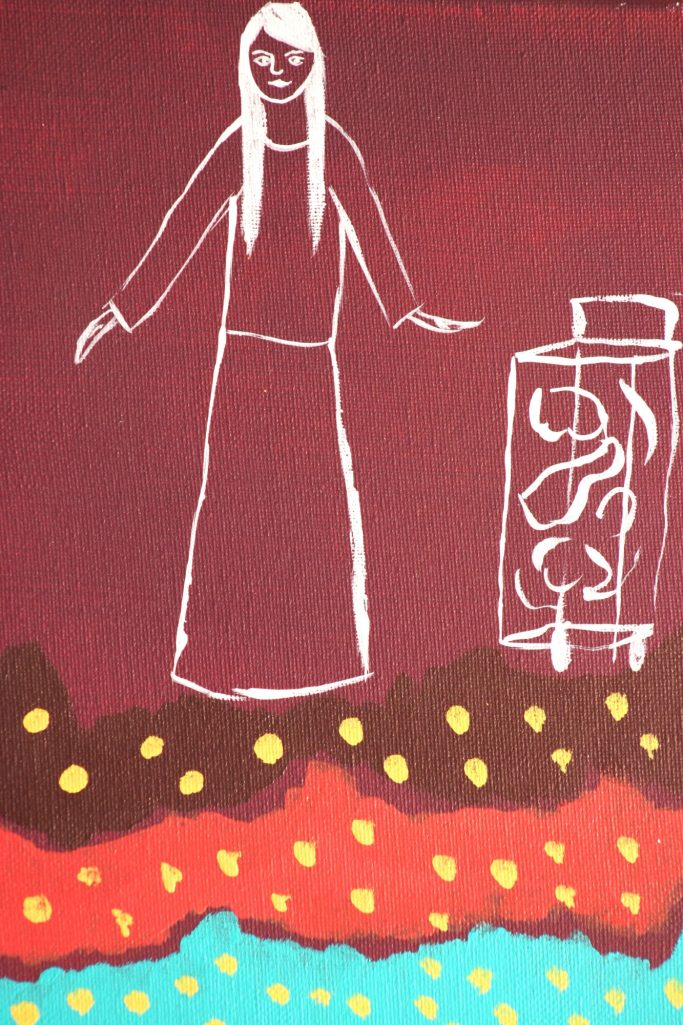 This series explores women’s painful and complex relationship with eating, shaped by cultural pressure, trauma, and self-perception. Inspired by conversations with women close to me, these paintings give voice to the often-dismissed experiences of eating disorders. As Suzie Orbach writes, “Whenever a woman’s spirit has been threatened, she has taken the control of her body as an avenue of self-expression.” These are not medical statements, they are emotional testaments of pain, resilience, and the longing to be seen and understood.